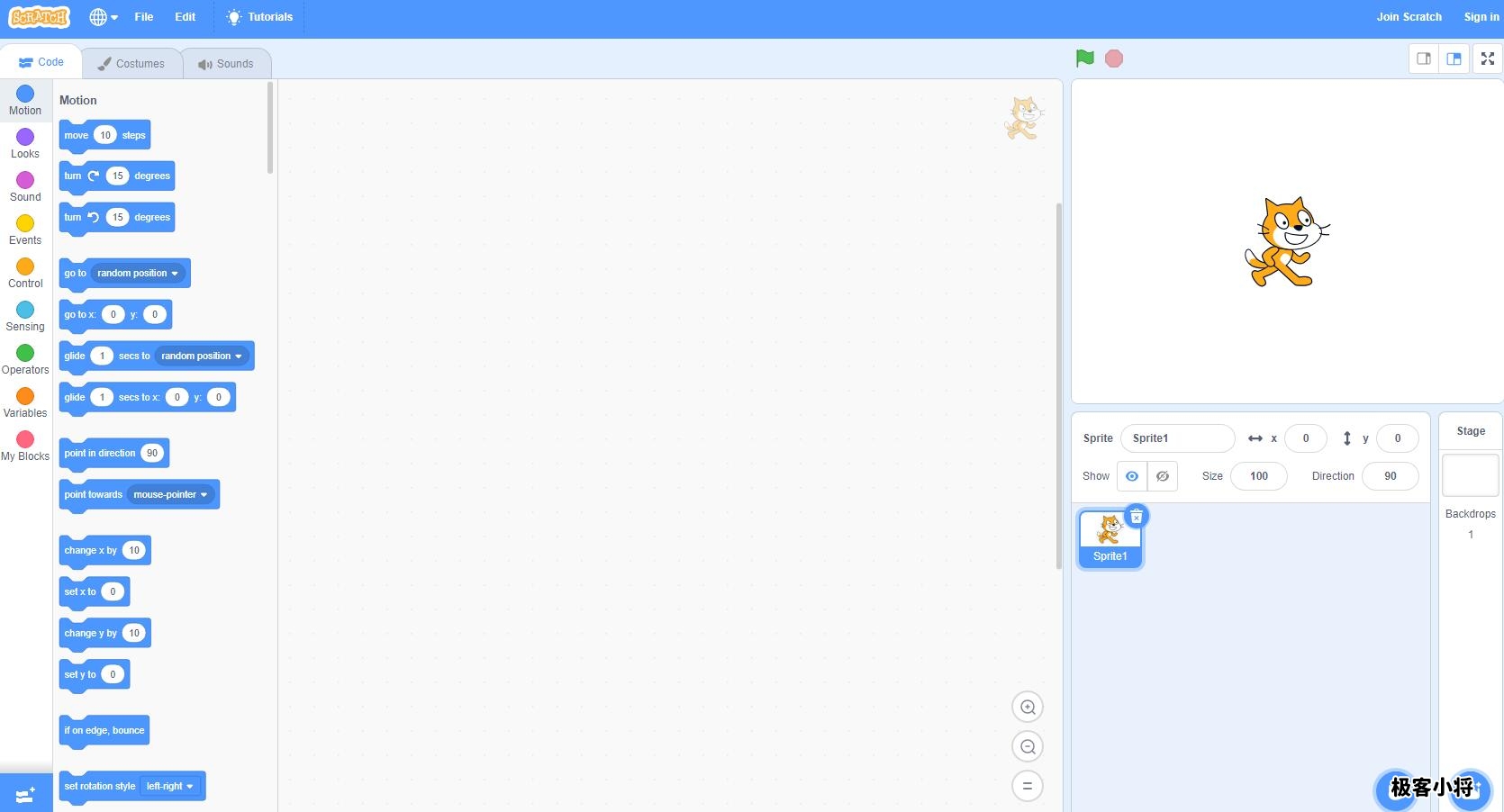 Scratch是面向青少年的簡易圖形化編程工具,其官方是麻省理工大學的一個分支網站,網址為https://scratch.mit.edu/。可通過其官網下載和安裝。目前支持Windows系統和Macos系統。并且發布了在線web版本,地址為:https://scratch.mit.edu/projects/editor/,點此訪問。