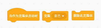 當作為克隆體啟動時:當克隆指令完成那一剎那,通常用作克隆指令后控制克隆的對象下一步操作。因為克隆自己后 在同一位置,肉眼是看不到的。