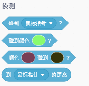 1、碰到鼠標(biāo)指針:偵測(cè)角色碰到鼠標(biāo)指針的剎那 (可選舞臺(tái)邊緣)