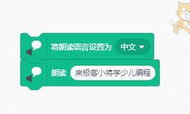 例如我們朗讀 來極客小將學(xué)少兒編程 這段文字,我們添加如下代碼: