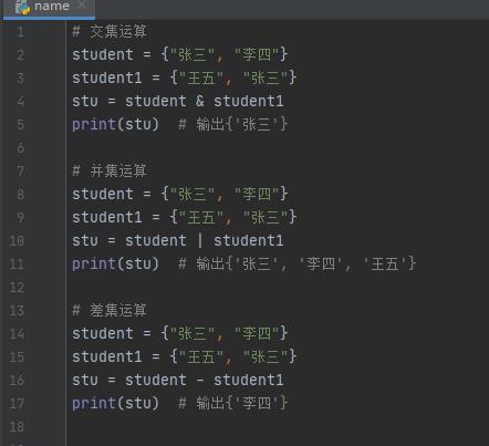 交集運算:交集,指的是獲得兩個集合中共有的元素,在Python中使用'&'操作符來實現交集運算。