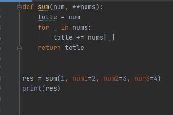 定義函數(shù)時,使用**操作符對形參進行修飾,在調(diào)用函數(shù)時,Python會將該參數(shù)位置處開始的實參收集為字典類型。但是必須以關(guān)鍵字參數(shù)的方式來進行調(diào)用。我們將上面的例子修改一下,如下: