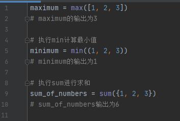 計(jì)算最大值,最小值,以及求和。max() min() sum():執(zhí)行max函數(shù)計(jì)算最大值,min函數(shù)計(jì)算最小值,sum函數(shù)進(jìn)行求和。傳遞的參數(shù)為可迭代對(duì)象: