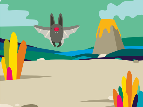 我們添加了一個侏羅紀背景和一只蝙蝠。接著我們再運動指令分組中找到【在?秒內滑行到x:?y:?】,添加指令如下: