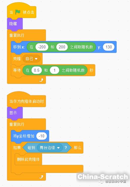 ②觸發積木,上方是圓形的,像個帽子,無缺口,這種積木總是處于一段腳本的開始位置,等待其他某個事件觸發,一旦事件觸發,就會執行它下面的腳本。比如點擊綠旗啟動程序。