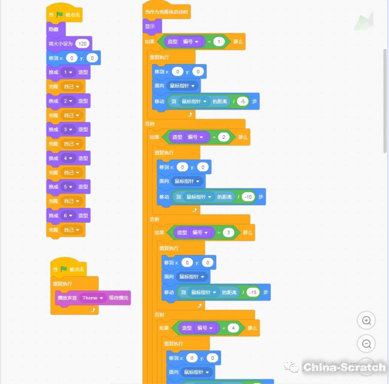 其構成程序的命令和參數是積木形狀的模塊,不用書寫代碼語句,只需按照一定的邏輯用鼠標拖動模塊把它們拼在一起就可以。