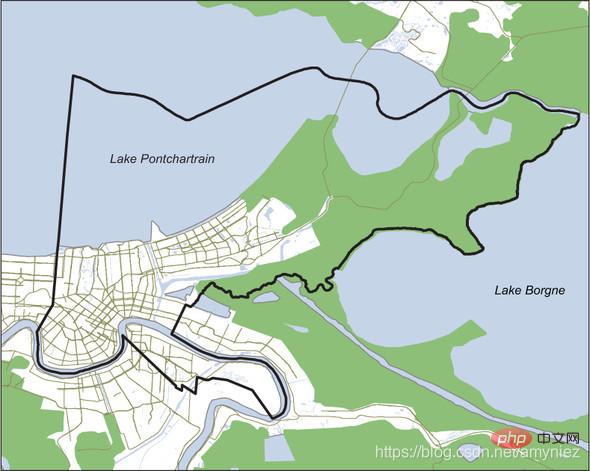 ??新奧爾良城市邊界、水體和濕地的簡單地圖:wkz少兒編程網-Scratch_Python_教程_免費兒童編程學習平臺