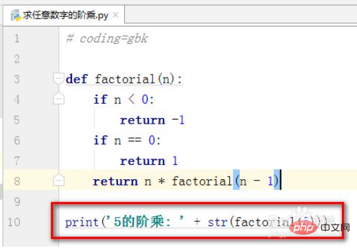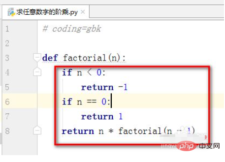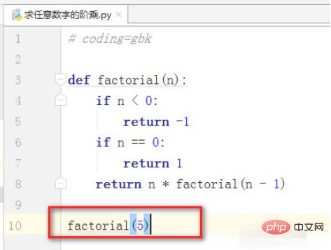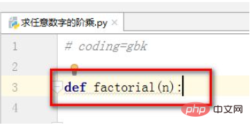 3、定義一個(gè) factorial() 函數(shù),此函數(shù)作用:用于計(jì)算傳入?yún)?shù)的階乘,如圖所示:HtN少兒編程網(wǎng)-https://www.pxcodes.com