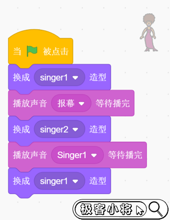 ①點擊綠旗后,歌手報幕后,開始唱歌
