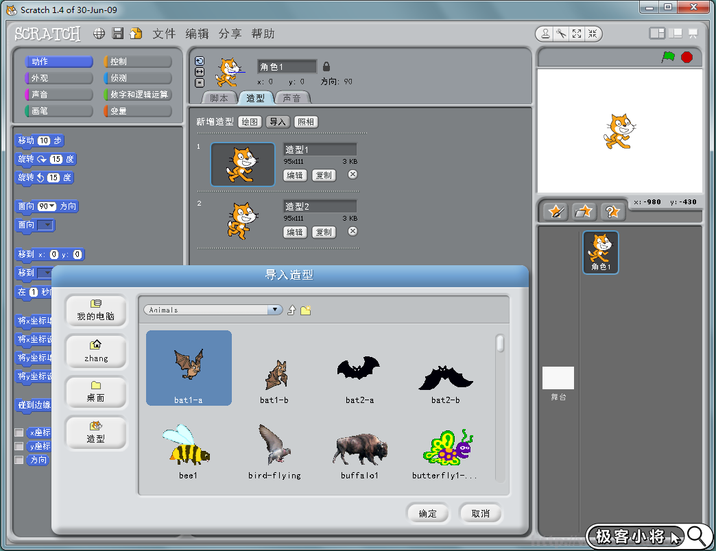 指示將積木拖到程序區,并按順序排列、還有就是換一個喜歡的角色。1)撰寫程序首先點擊要扮演的角色,然后點擊它“腳本”,然后按命令分類選擇您想要的命令構建塊,將命令構建塊拖動到程序區,并排列順序(您可以通過用鼠標拖動來更改它的順序)2)更換角色用工具的剪刀剪開小貓,