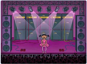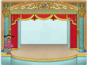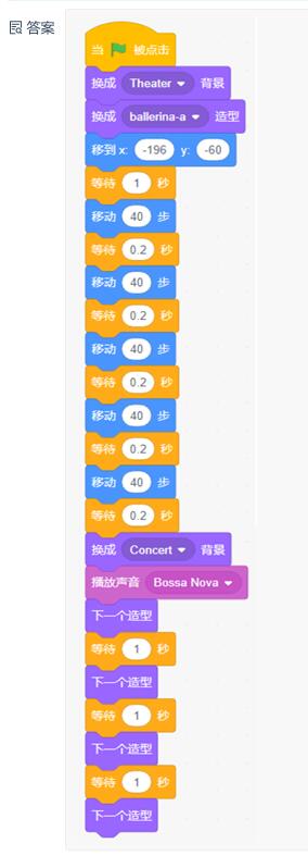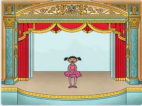 (1)點擊綠旗,角色Ballerina初始造型為ballerina-a,初始背景為Theater,初始位置在舞臺左側(cè);