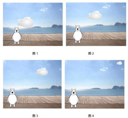 3、“云朵”角色能實現“從小熊頭頂飄離,并向右上角平滑地漂移,越飄越高, 越飄越小,直到最后消失”的動畫效果。