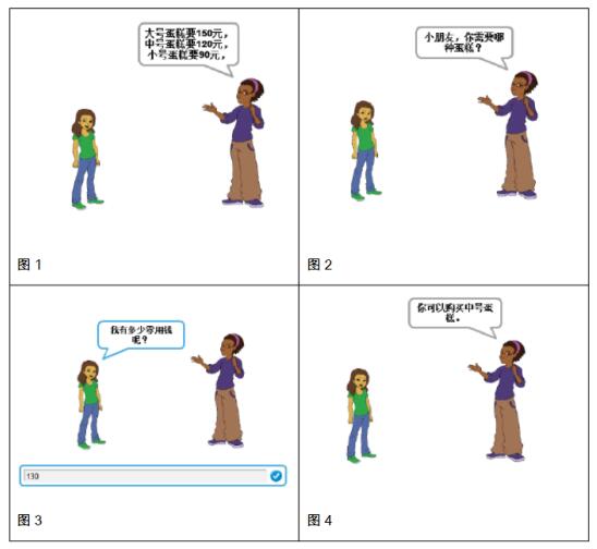 3、售貨阿姨根據(jù) Abby 有多少零用錢,推薦 Abby 可以買的最大一款蛋糕,如 果 Abby 的零用錢不足 90 元,售貨阿姨要說(shuō)“非常抱歉,你的零用錢不夠……”