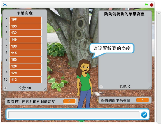 陶陶家的院子里有一棵蘋果樹,每到秋天樹上就會結出 10 個蘋果。蘋果成熟的時 候,陶陶就會跑去摘蘋果。陶陶身高 130 厘米,同時還有一個固定高度的板凳,當她 不能直接用手摘到蘋果的時候,就會踩到板凳上再試試。