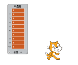 1、建立一個列表保存燈的狀態,0 代表關,1 代表開。當綠旗被點擊,列表添加 10 個元素,全部為 1。