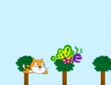 編程實現: 1、背景顏色淺藍色,角色:Cat1 Flying、Butterfly1 和 Tree。 2、小貓的初始坐標是(-70,-140),初始化造型為 cat1 flying-b,蝴蝶的初始 坐標是(50,-70),綠樹的角色大小為 60,初始 Y 坐標為-132。 3、小貓和蝴蝶不停地上下輕微移動,并切