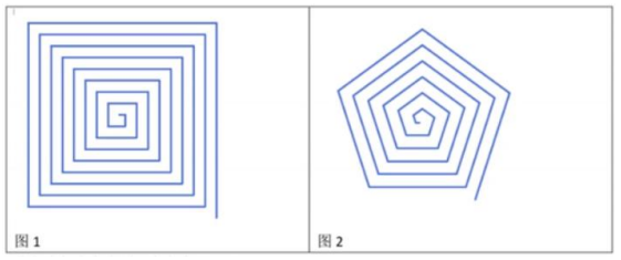 先畫圖 1 所示正方形,一秒后清除圖 1 的圖形,再畫圖 2 所示的五邊形。